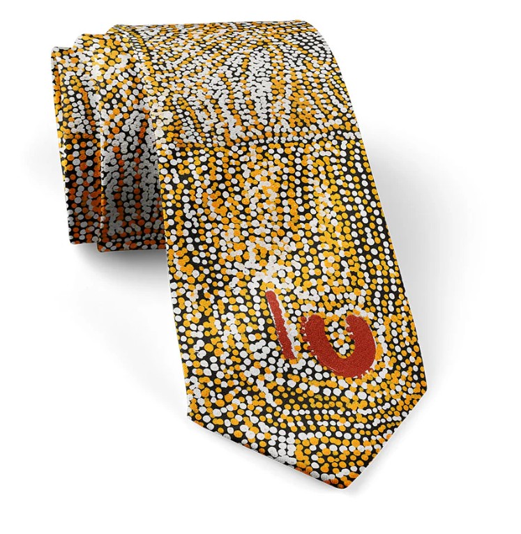 The Elaine Warnatjura Lane Silk Tie Set combines elegance and cultural heritage with a 100% silk tie and matching pocket square featuring striking Aboriginal art. Gift boxed for a polished presentation, this set adds a refined and meaningful accent to any formal look, making it an exceptional choice for yourself or as a thoughtful gift.