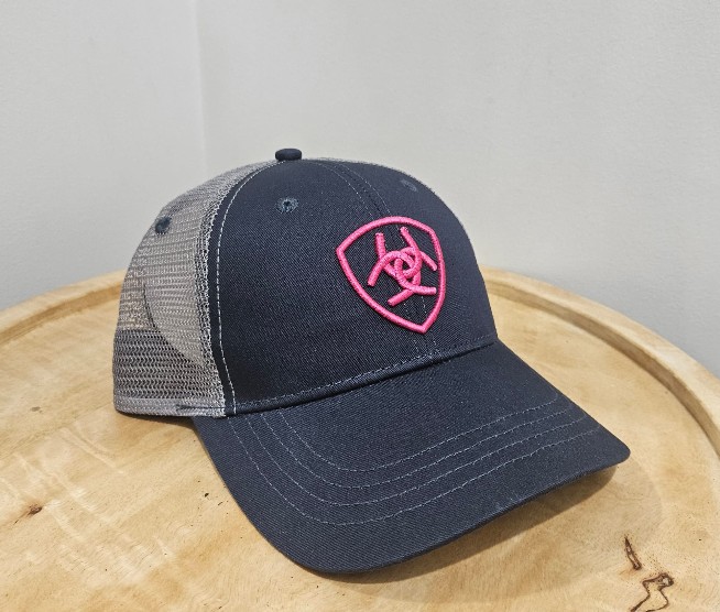 - Get all day comfort each time reach for this Ariat cap. Featuring an embroidered logo on the front and a mesh back with snap adjustments to ensure a perfect fit.