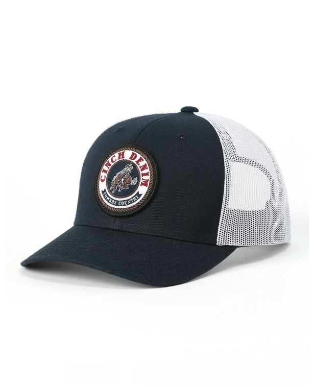 Top off your ranch-bound look with this navy blue Flexfit trucker cap by CINCH. Designed with a mid-profile fit and 6-panel construction, it features a woven CINCH Denim logo patch up front and a secure back snap closure. Whether you’re working the ranch or kicking back on the weekend, this cap is made for everyday wear.