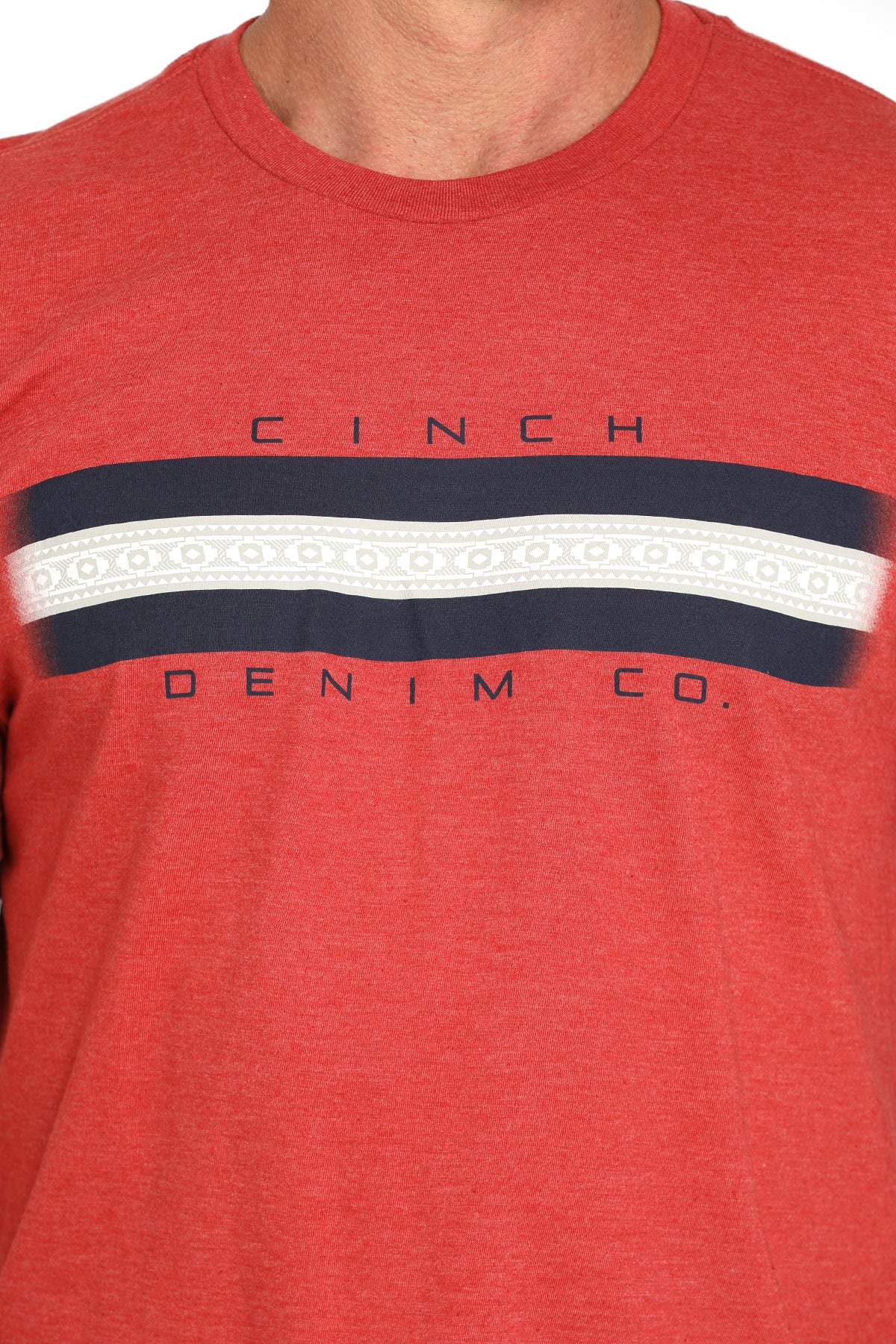 Product Description Offering casual comfort wherever the day takes you, our red cotton-poly crew neck tee shirt will never let you down. Designed with a CINCH Denim Co. front screen print, this tee is a dependable classic that pairs with any jeans in the stack.