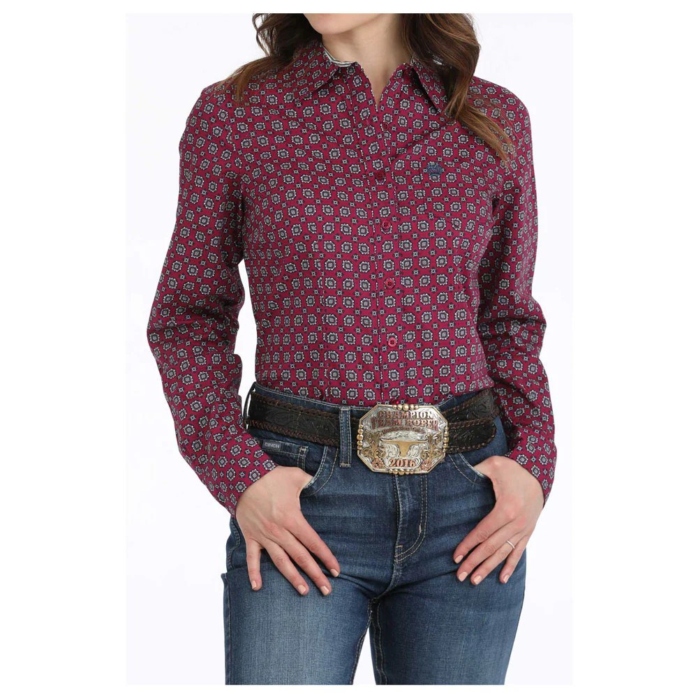 Cinch Women's Long Sleeve Western Button Shirt in Burgundy Print