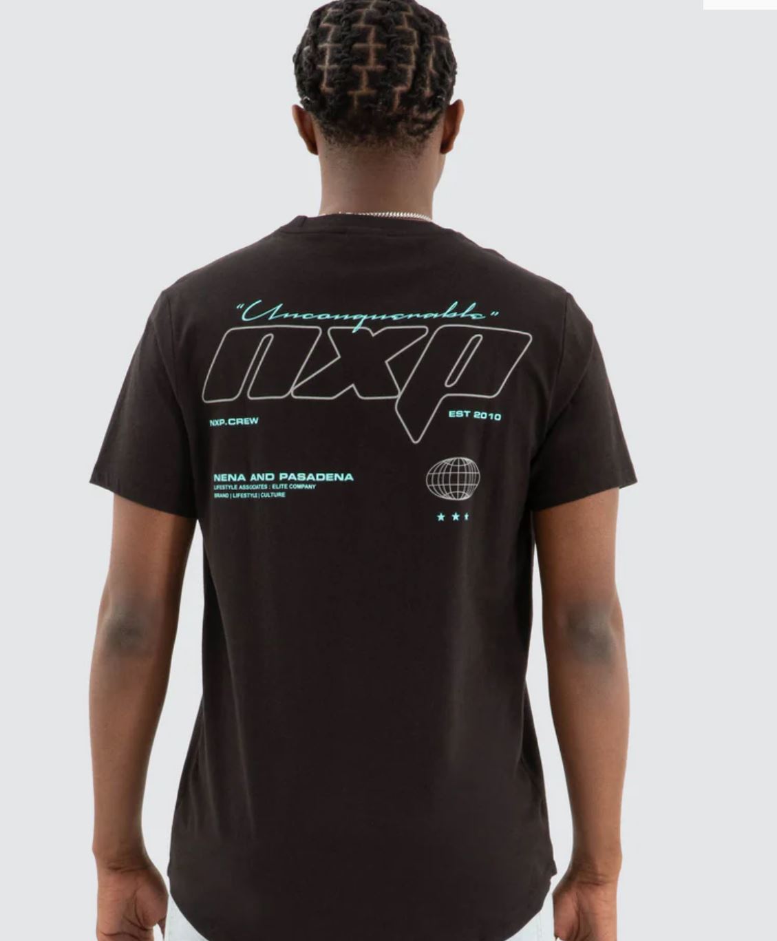 The Mighty Dual Curved Tee in Jet Black from NXP is a staple piece, crafted with a slim fit and a long, curved hem for a distinctive silhouette.