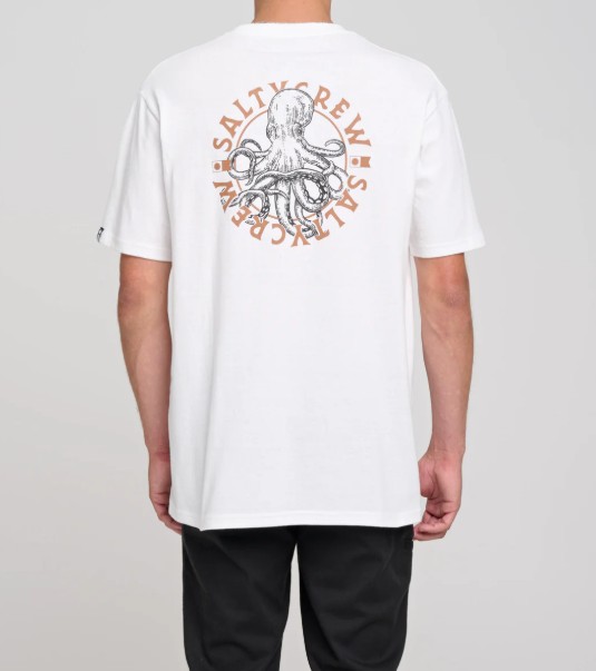 Tentacles Standard SS Tee in White is made from our signature textured cotton jersey, 180gsm in weight. Finished with Salty Crew clamp label at sleeve hem. Screen printed front and back prints.