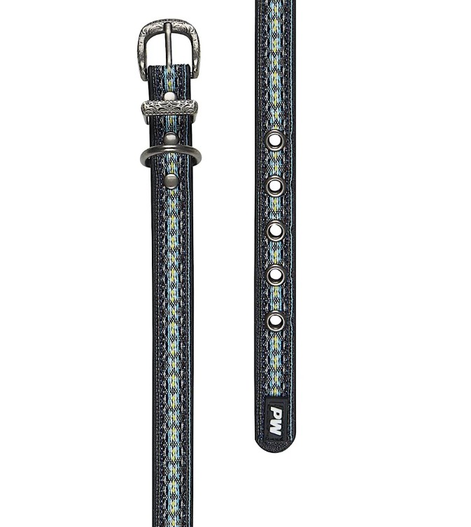 Aztec woven tape, metal D-ring, Pure Western badge, antique silver hardware