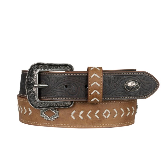 AUDTooled basketweave tab ends, handlace detail, Aztec feature conchos, removable buckle, Pure Western concho, antique silver hardware