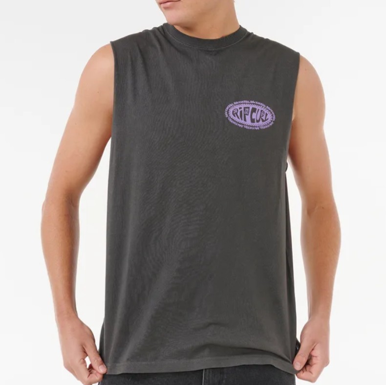 Heavy on comfort with a lived-in feel, the De Oval Muscle Tee features garment pigment dye, a heavy enzyme wash, and puff print artwork front and back. Cut in a muscle fit from 180G cotton jersey and finished with a woven flag label.