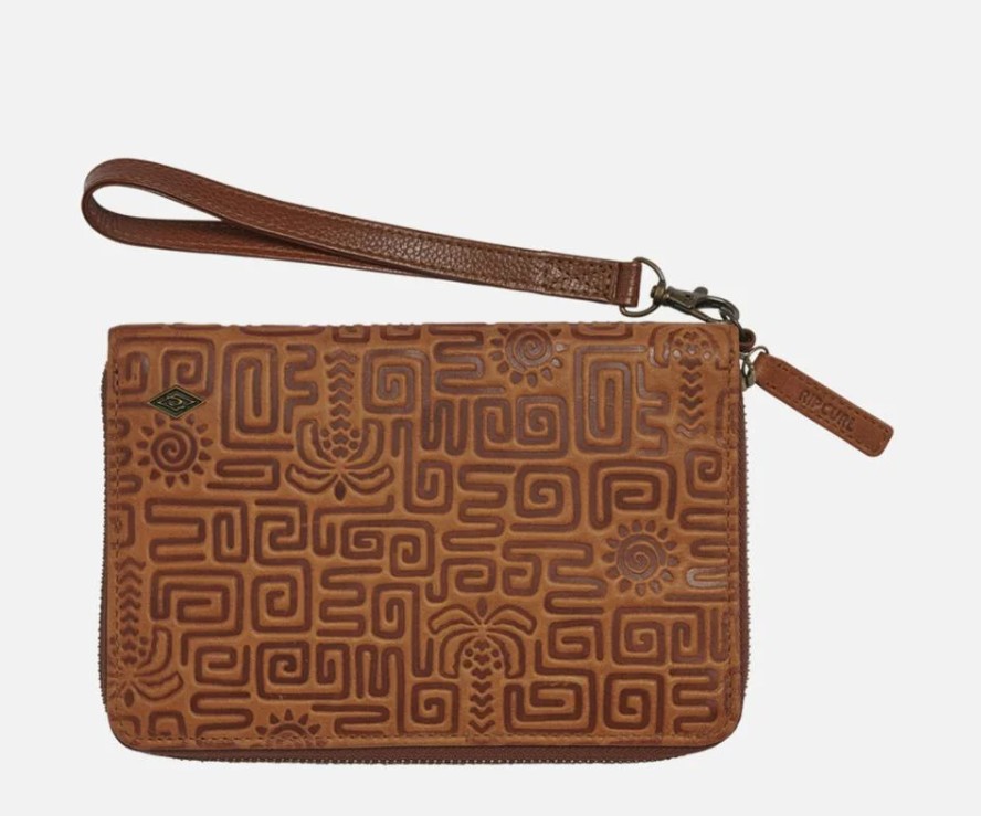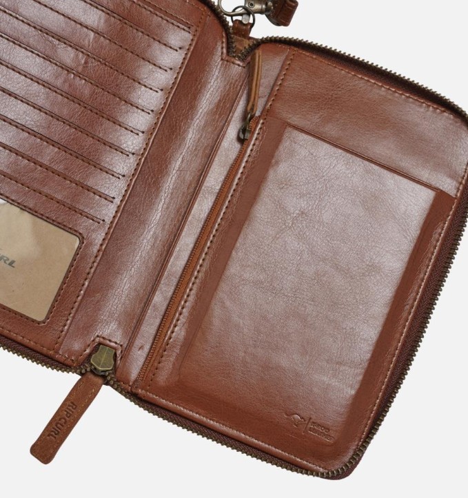 Embossed pattern on front panel,Metal logo trim,RFID protection,Coin compartment,Note compartment,Multiple card slots,Detachable wrist strap