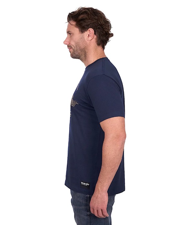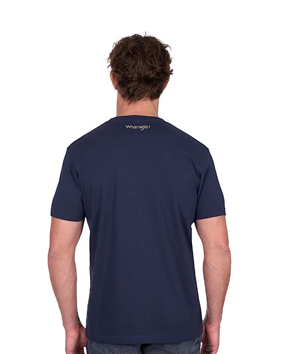 Product Description Wrangler Mens Joel T-Shirt - Navy. Online Australia. Features: Classic tee shape Rib neck band Wrangler® iconic logo hem label Material: 100% Cotton Jersey, 180gsm