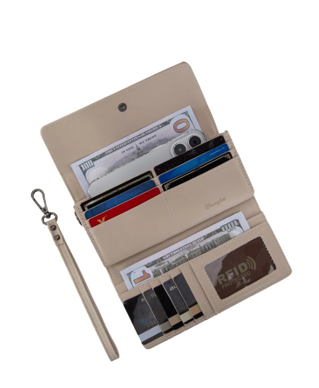 Carry your essentials in style with the Wrangler Harper Aztec Wallet. Featuring a striking embroidered Aztec pattern, this compact wallet combines functionality with Western flair. The secure foldover closure keeps your cards and notes safe, while internal card slots and note pockets keep everything organised. The detachable wristlet adds versatility for on-the-go convenience. Finished with an authentic Wrangler® logo badge. One size: 19.5cm (L) x 11cm (H) x 3cm (D).